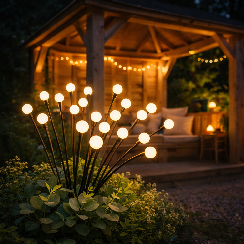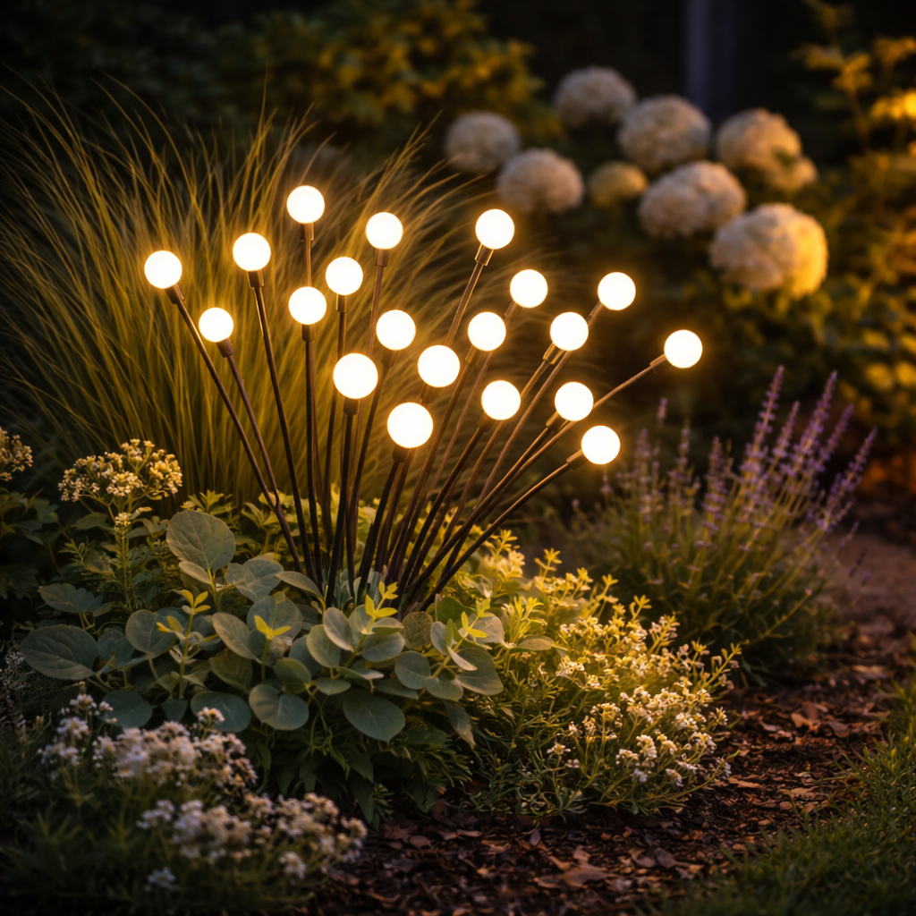Its soft, warm light gently illuminates gardens and outdoor spaces, creating a serene and inviting atmosphere at night.